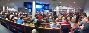 I praise the Lord for the testimonies I received at First Baptist Church of Woodstock (Near Atlanta, Georgia) after speaking four times yesterday. The following photo was taken in the lower section of the auditorium for the second service (this was the smaller attended service and held in the smaller auditorium):
