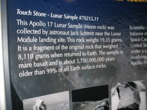 The second is of Emma at the NASA exhibit, touching the 3.75 billion year old moon rock (yes, I like sarcasm)…