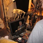 Working with the company who constructed the various animatronics for the Creation Museum, AiG artists have installed a special computer-controlled laser. Rather than use a large number of signs and other models that would take up a large area, a monitor has been installed on which people will be able to see AiG's Dr. David Menton speaking on the topic of apes and humans. As Dr. Menton speaks, he will use a laser to point at various parts on the skeletons as he makes his teaching points. The laser will then shine on the particular parts of the skeletons, as if Dr. Menton is live on the monitor actually using the laser pointer!