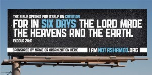 There is no doubt the secular humanists are becoming more aggressive in our culture—it is certainly a sign of the spiritual battle that is heating up day after day. Such a press release reinforces the need for God's people to stand on God's Word and call this nation back to the Word of God. One of the ways God's people can be involved in publicly standing for the Bible is to sponsor one of the billboards AiG has designed and can be found on the www.iamnotashamed.org website. Here are pictures of the billboards: