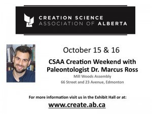 The Creation Science Association of Alberta, led by Dr. Margaret Helder, is the conference sponsor. At this meeting, Dr. Marcus Ross of Liberty University in Virginia—who spoke with me last year at an "Answers for Darwin" conference—will be the featured speaker.