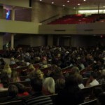 Well, maybe it wasn't a massive protest, but atheists represent such a small percentage of the population. So compared to the number of Christians, this was a massive protest! Here is a photograph taken in the auditorium at the same time the two atheists were protesting: