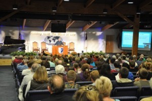 The auditorium (about 400 or more people are registered for this conference—much like a family camp)