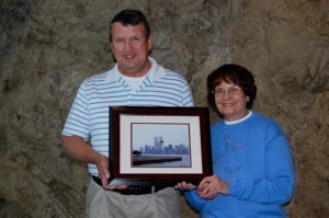 The photo that Ed and his wife Sue are holding in the photo above was taken by Ed in 2000 very near the Statue of Liberty—from a ferry boat heading to Liberty Island, where the Statue stands. As he took the photo of the skyline of Manhattan, he wondered why the flag was at half mast, and so he asked one of the park rangers about it (the Statue of Liberty is considered a U.S. national park). The ranger indicated that a plane had crashed near Mount McKinley in Alaska, leading to the deaths of some national park employees, and so flags were being flown at half-mast in all the national parks throughout America. Little did Ed know that his photo would have some poignancy just over a year later on September 11, 2001. When Ed asked the park ranger when the flag would go back to full staff, he replied "the next day." Ed told us that "God put me in the right position at the right moment to get the photo."