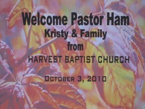 Yesterday morning, I spoke at a Baptist church in western Cincinnati where our eldest son Nathan has been appointed as pastor. This was the day for the church to officially welcome Nathan and his family in their new position. Nathan is a computer programmer during the week, and now, in addition to his usual job, is pastoring this church with a burden to reach people in Cincinnati with the gospel. I gave my testimony concerning my upbringing in Australia, and I told them how my father and mother taught me to stand on the authority of God's Word—and now Nathan (and the rest of our children) have had that legacy passed on to them. Even if I say so myself, Nathan is a very good Bible teacher. Here is the church's website: http://www.harvestbaptistcincy.org/