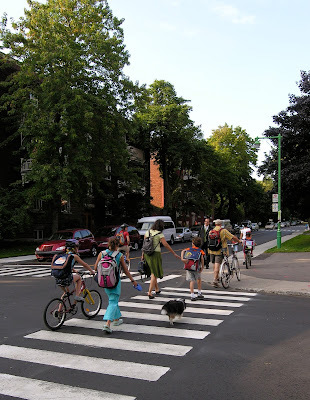 This is not this year's batch of kids going to school: you can see that there's not a mask in the lot. But school started in Montreal this week, and will start in the rest of the province next week. Summer was unusually hot and sunny here--not as dry or as hot as other places, but nevertheless the weather is enough to worry about.