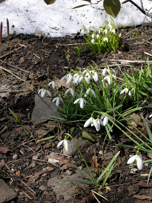 Well, actually the snowdrops in front aren't as far along yet--this photo was taken a couple of years ago--but there definitely are little green shoots coming up. In addition, we woke up last Sunday morning to the scent of skunk: another definite sign of spring.Heaven knows we need all the good signs we can get! The authorities keep telling us that the light is showing at the end of the tunnel. I must admit, also, that we had our first Pfizer vaccine almost two weeks ago. But given that Covid-19 variants which might escape the vaccine are swirling around, I guess we'll have to look to the those things which make us smile that have nothing to do with pandemics!