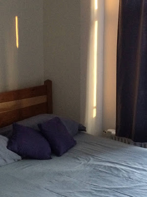 The photo may not look like much, just a column of light falling on a bedroom wall, but it means that spring is almost here.