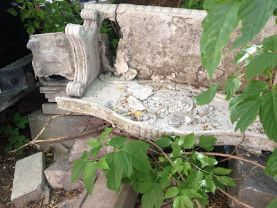 The photo was taken last summer in front of a house that was being renovated. Probably built in the early 1900s, it obviously had a lot of details that were high-end at the time. This bench--from the backyard, the front garden?--hasn't passed the test of time, however.I'm posting it today because yesterday I got the publicity package for my next book, Concrete: From Ancient Origins to a Problematic Future. The task for the weekend will be to look it over to see what the publicists are proposing.