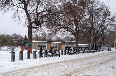 Saturday Photo: Winter Biking, Bixis, and Snow