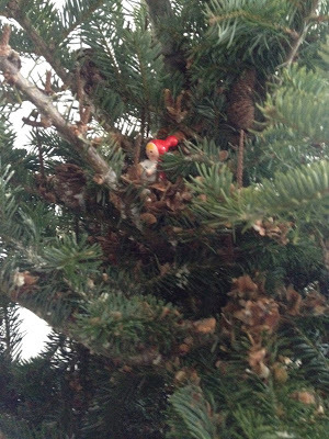 This photo shows why I chose this tree for a Christmas tree: the pine cones.Of course, I wasn't the only one doing the choosing, but nobody objected to what seems to me this delightful bit of nature.