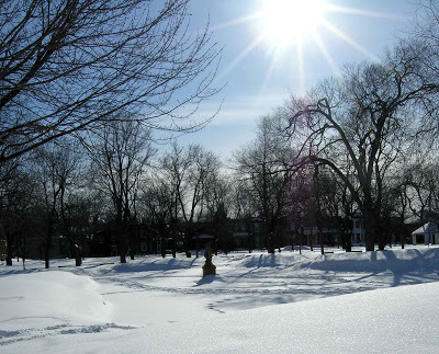 Spring doesn't come until the end of next week, but the sun is already quite high in the sky.We're back in the deep freeze for a few days, with fresh snow on the ground, but the spring light is blinding.