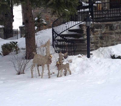 The little deer have been out in the cold all winter, part of a Christmas installation, I think. But right now even they must be wondering when the winter will be over.Spring came last week, we're told. Certainly the sun is higher in the sky. Yet the temperatures around here don't feel like the season has changed.