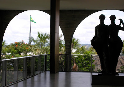 The photo was one I took four years ago in Brasília from the gorgeous Ministry of Foreign Affairs building, designed by Oscar Niemeyer. Note the big Brazilian flag in the background. Things appeared better then, with Dilma Rouseff poised to win re-election. How times have changed. Wonder if the view has.