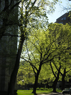 Beautiful day today. Almost certain that it will eventually be spring! This morning I took a walk in the Mount Royal Cemetery for the first time since the fall--in the winter you never know where the ice will be so I tend to avoid walking there. But today there is even a little green grass and lots of water in the stream that runs down from the top of the mountain.