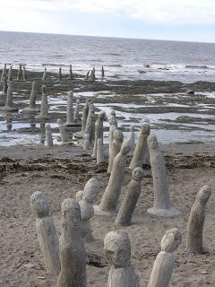 So here are two photos from the trip. One is of L'anse au griffon, and the other of the weirdly amazing concrete figures that Marcel Gagnon has created, coming out of the St. Lawrence at Ste-Flavie.