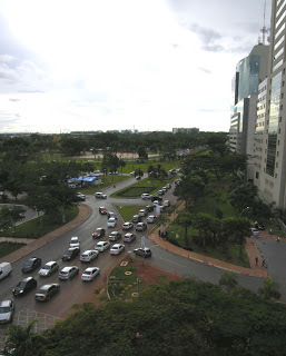 The photo was taken from the top floor of the hotel. Check out the cars: definitely not what you'd see in Cuba.