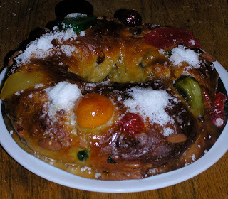 This is a Portuguese holiday cake, covered with crystalized fruit and sugar. Quite good if you like that sort of thing, which Lee certainly does. Bought one last week and it was much appreciated.A Padaria Coimbra, AKA La Baguette dorée, on Mount Royal in the Plateau makes a lovely one. We discovered it six years ago during the difficult winter we spent in an apartment nearby following the fire that seriously damaged our house.