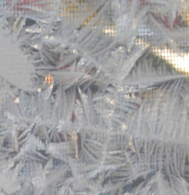Rather nippy this morning--down near -20 C (0 F)--and on my walk this morning I saw two things that I wished I had my camera to recordThe first was a trio of tiger-striped cats sitting in a window, looking longingly at the outside. The second was a battered umbrella which had apparently given up the ghost during Thursday's rain, and then became frozen in a puddle upside down.