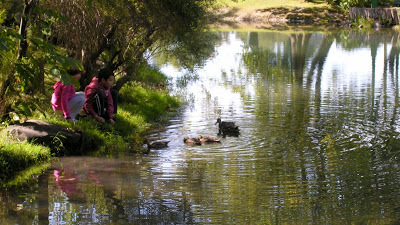 This photo was taken a couple of years ago at a pond in Parc Beaubien, a rather civilized neighborhood park near us. For several years ducks had been nesting at this pond or in another a short flight away, and one of our summer pleasures was to watch the ducklings.However, this year the only ducks to show up were three males. Don't know what happened to the females, but it looks like the guys were checking out the place where they were born. Unfortunately work on the ponds-which originally were natural but which have been tamed--emptied them in early spring this year and last, so there was no place for nests.