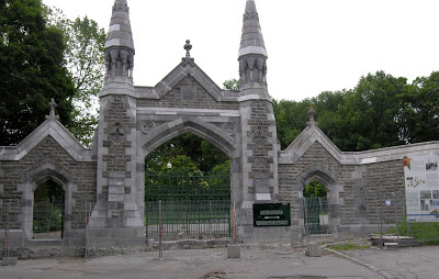 The gate on the north side of Mount Royal Cemetery are just about finished. The stonework was completed before the snow fell last winter, but it's been some time for the extent of the repairs to become evident.