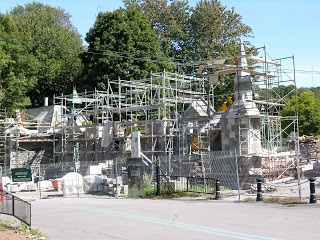 I suppose that's not too surprising. A cemetery, after all, is a place where time stands still, except in the rolling onward of the season. Here are a few other photos of the gates, shortly after the original construction in 1862, as it was before reconstruction began in 2010 and during the reconstruction process. Must add that before the work this time, the gate was completely covered with climbing hydrangea--absolutely beautiful. Do hope it will be replanted.