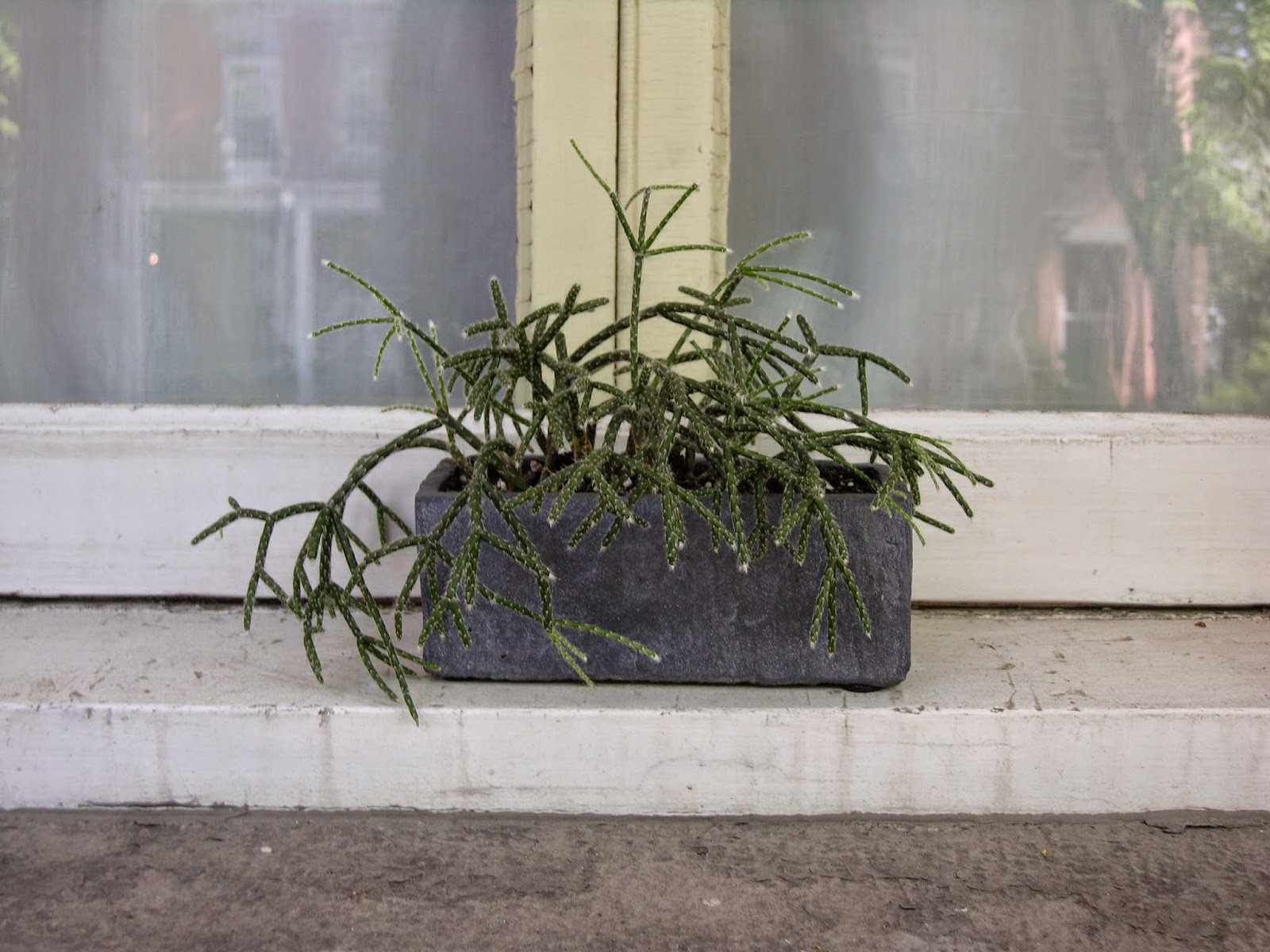 My friends and family know I love plants, so frequently I receive flowers or houseplants as gifts on special occasions. Last week was Mother's Day and Elin and Jeanne arrived with this lovely little one.The pot is almost Zen in his simplicity, and I can see that it will take a favoured position in my indoor garden no matter what plant it contains. But I hope that the one in it now thrives because it is very interesting. Long, thin branches that appear to be succulent, with tips that look as if they're ready to grow. No spikes like a cactus, no hint from the soil in the pot as to what it originally grew in.
