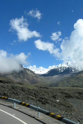 Today I started working through the photos and began transcribing the pages and pages of notes that I took on my trip (No laptop when I travel: it's just one more thing to keep track of, and I was travelling by myself.)Here's a shot through the front window of the bus I took from Cuzco to Puerto Maldonaldo in Peru. We are approaching the second pass on the route across the Andes, and should be about 4,500 meters high. The mountains of the cordillera are still snow covered even though it is late spring--but, after all, they're 5,000 meters or higher.
