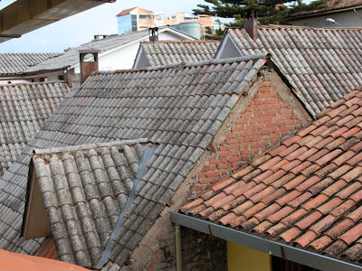 The 254 photos I took on my trip have been whittled down to 85, I've transcribed 49 pages of notes, and there's a Power Point made to show unsuspecting friends and relations. Guess that means I must return to regular llife.Here's one of the pictures I like particularly. Taken from the open staircase in the small hotel where I stayed in Cuzco, it echoes tile roofs around the world. It rained a hard while I was there, and the efficiency of the way the tiles channeled the run off was impressive.