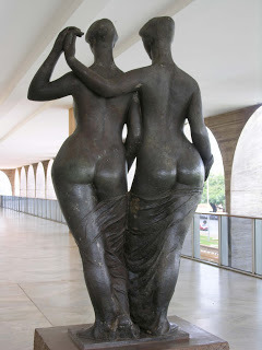 The first is the big statue by Brazilian artist Roberto Ceschiatti that has pride of place in the second floor open air garden at the Palacio do Itamarty. The ample charms of the two women fit very well in the sumptuous space.The second is of a mannequin used in an open air shop. It was not the first time I'd seen one of these forms with a very prominent rear, but it was the first time I'd had an opportunity to take a picture. Compare and contrast with the skinny forms that are used to display clothes in North America.