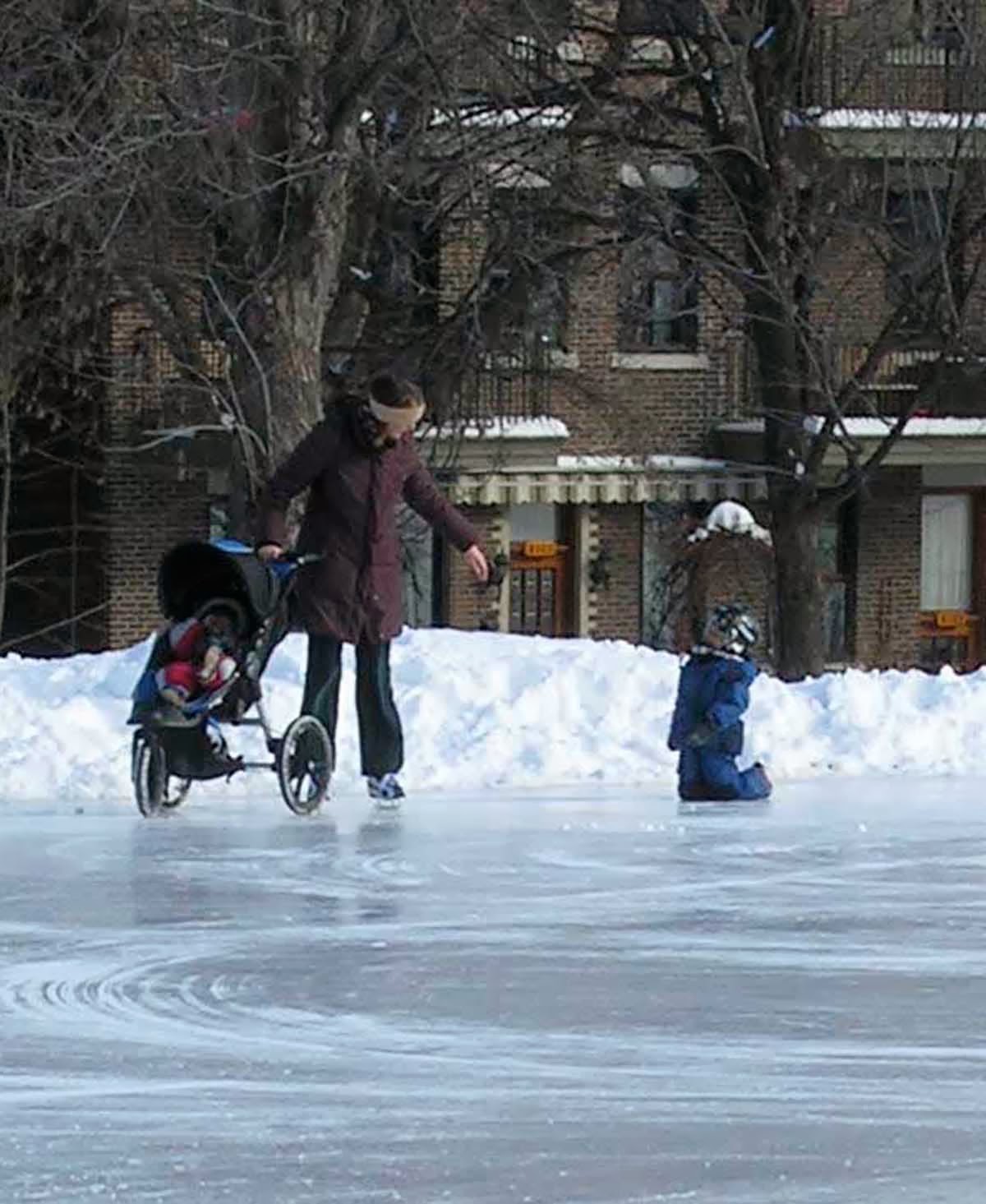 This morning we turned the furnace on and when I went out walking it was shiveringly cold. I think that fall is finally upon us, and winter is not far behind.To make it seem all the more seasonal, city workers were putting up the boards for the outside skating weeks in one of the parks. It's likely to be a while before we see scenes like the one in the photo where a small one is learning how to skate. But the time is coming, climate change or no climate change.