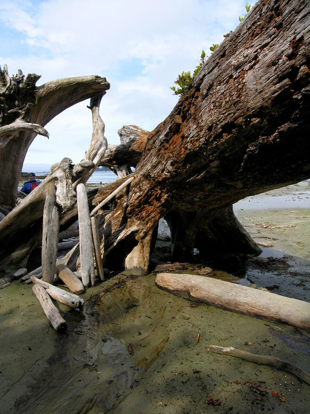 There's nothing in front of us but ocean for thousands of miles. Obviously the forces of the sea have dislodged a lot of trees near the shore, as well as carrying cut timber some distance from where it was lost by the loggers.