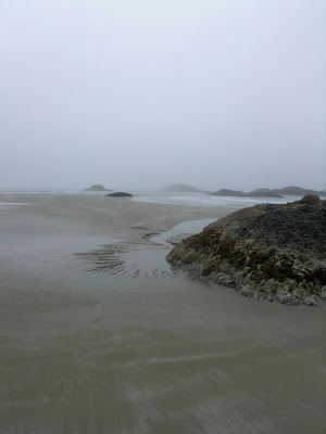 The photo was taken on Combers Beach when it was so foggy that we couldn't see the little off short islands where sea lions like to hang out. We went back another day as the tide began to go out and were able to see them settling down for a rest through binoculars.