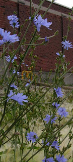 Chicory is a non-native plant, and considered by some to be invasive. I like it though, because its cheerful blue flowers look great with just about ever