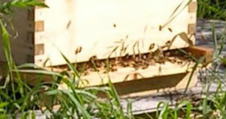 Last spring we were saddened to see that the hive had been dismanteled. Vandalism? Bee die-off? Too much work?I still don't know but this week I was delighted to see that a hive is back in place with a sign noting "Bees at Work," as indeed they were!