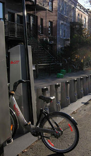 I've mentioned before how I don't ride bikes, but I must admit I like the idea of people riding all over the city. Yesterday I walked from our place to central downtown Montreal, and I was amazed at how many people--many who aren't much young than I am--were zipping around the city's traffic clogged streets.Bixis have something to do with the popularity of bikes here, although I expect the traffic problems have helped a bit too. And it seems that the Montreal version of the bike-share program is starting in New York City shortly. The New York Times today has a nice short video about how excited one man is about the idea. Check it out: quite charming.