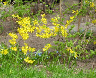 Lovely soft morning with the trees leafing out and the forsythia in bloom, which are reasons to wait for the beginning of May around here. But