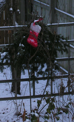 Well actually I took most of them down at the end of Janiuary, but the branches and stocking (which belonged to our late cat Calie) have stayed up. Each time I looked out the kitchen window, I was reminded of what a nice holiday we had.But the days are getting longer and it's time to recognize that all good things must come to an end, if only in order that we can appreciate them more when the holidays come around again.