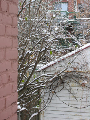 We've had a few flakes at least three times, but yesterday was the first snow that lasted. Not much on the ground, but still...
