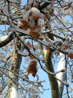 Saturday Photo: Snow Fallling on Nearly Bare Branches