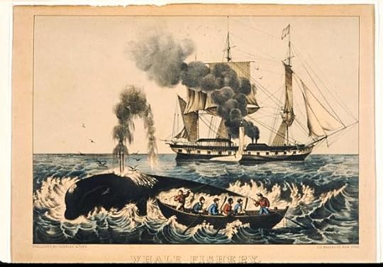 In the foreground of the photo above you can see a whaling crew attacking a sperm whale, the species that provided oil prized as an illuminant and lubricant. Seen through 21st century eyes, hunting this giant mammal is an ecological crime. (No doubt they were hunted almost to the point of extinction.) But seen through a 19th century lens, whale hunts filled a need as much as today’s natural gas drillings or Texas oil wells.