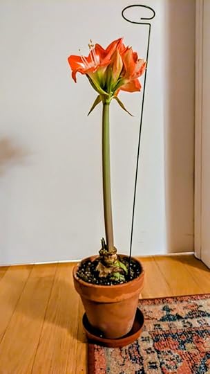 My amaryllis grew all the way from a bulb to this beautiful flower in only one month! Maybe it won’t need the support.
