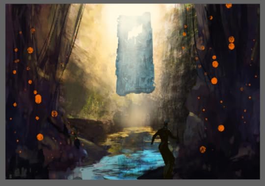 And now the countdown begins. Less than 24 hours before the Kickstarter goes live. I’m a tangled wreck of nerves, sort of like Christmas tree lights when you pull them out of the storage box and realize you must have run out of patience last year and just stuffed them all in without any effort at organization. But soon it will all begin and hopefully we’ll be able to produce two new anthologies around about this time next year, with stunning stories from today’s best authors, both new and old. And to start it off a little early, here’s a concept sketch from Justin Adams for the cover art of ALIEN ARTIFACTS. We’ll introduce the final art as soon as it’s been finalized, but this should be cool enough to whet your appetite. *grin*