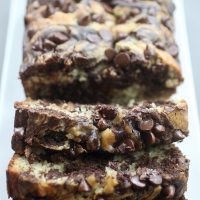 This jam-packed loaf of chocolate chip marbled banana bread is calling your name. I hope you have some ripe bananas ready because you might just want to make it right away. P.S. I’m totally eating a slice right now while I write this post and OMG… it’s so good.