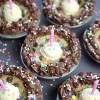 These cute cookie cakelets make adorable individual treats to celebrate with others. They’re party perfect, baked in tiny 5-inch pie pans.