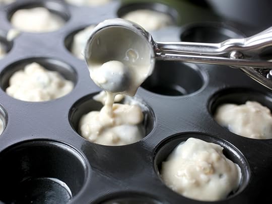 Just mix all the ingredients together and then scoop the batter into the cavities of a greased mini muffin pan.