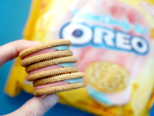 Have you tried the Cotton Candy flavored Oreo cookies yet? They are a new limited edition flavor available exclusively at Target. I had some for the first time a few weeks ago and fell for them right away. I don’t eat the golden Oreos that often because I always gravitate to the original… but these had me going back for more.