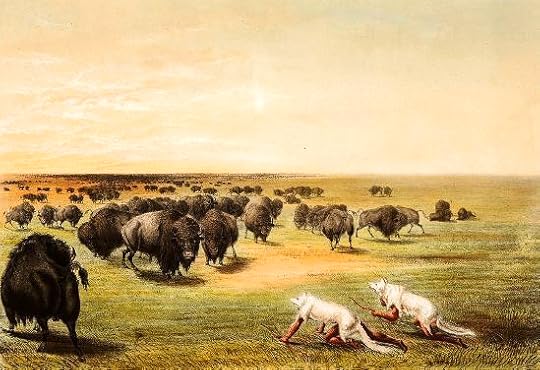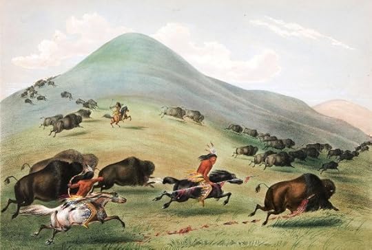 வேகத்தை ஓவியத்தில் கொண்டு வருவது எளிதானதில்லை. அதிலும் அகன்ற நிலவெளியின் ஊடே குதிரை வீரர்கள் காற்றில் பறக்கும் தலையோடு ஆவேசமாக எருதுகளை வேட்டையாடும் தீவிரத்தை ஓவியமாக்குவது எளிதானதில்லை. கேட்லின் இதை மிகச்சிறப்பாக வரைந்திருக்கிறார்.