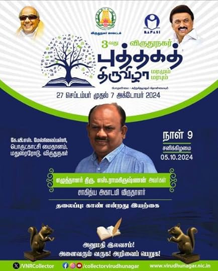 விருதுநகர் புத்தகத் திருவிழாவில் அக்டோபர் 5 சனிக்கிழமை மாலை உரையாற்றுகிறேன்.