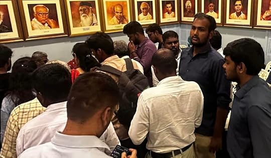 இரண்டு முதியவர்கள் ஒருவருக்கொருவர் தோளில் கைபோட்டபடி நின்றிருந்தார்கள். பருத்த உடல் கொண்ட பெண் நிற்கமுடியாமல் தரையில் அமர்ந்திருந்தாள். காத்திருக்கும் நிமிடங்கள் உயரமான மதிற்சுவர் போலாகியிருந்தன.